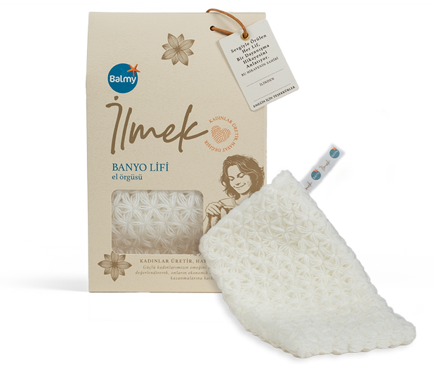 Her Balmy İlmek ürünü, geleneksel el örgüsü tekniğiyle üretilmiş doğal bir banyo lifidir. Türkiye’nin dört bir yanından kadınların ellerinde şekillenen bu lifler, hem zamansız bir geleneği yaşatır hem de kadınların ekonomik özgürlüğüne katkı sağlar.